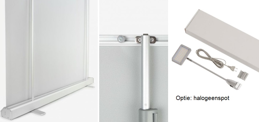 Rollup GROOTFORMAAT voor een aantrekkelijk geprijsde presentatie. Een roll-up banner behoort tot de basis van je beursmateriaal en is uiterst eenvoudig in gebruik. Rol de banner simpelweg uit het systeem en je hebt direct een grote display voor je beursstand. Roll-up banners zijn ook ideaal voor de aankleding van winkels en kantoren. Stabiliteit d.m.v. de 2 uitklapbare voeten. Wordt geleverd met draagtas. Full colour UV print op premium banner polyester (B1) met een matte uitstraling. Het fijn geweven polyesterdoek heeft een grote kleurkracht en een krasvaste toplaag met PVC-coating, wat kreukels en scheuren tegengaat. Aanleveren van compleet drukbestand in PDF in formaat van 200x200 cm met rondom 1 cm afloop (dus bestand totaal 202x202 cm). Het drukbestand zullen wij uitvoering controleren en naar u terugkoppelen als het niet geschikt is om te printen. Tegen meerprijs kunnen wij drukbestand ook voor u opmaken. Ook verkrijgbaar tegen gelijke prijs met print op PVC-vrij bannermateriaal (indien gewenst bij bestelling vermelden). Optie: halogeenspot.Wilt u een prijs aanvragen?